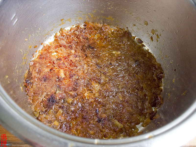 В конце процесса лук должен приобрести темно-краснокоричневую окраску, цвета красного дерева, т.е. полностью карамелизоваться.