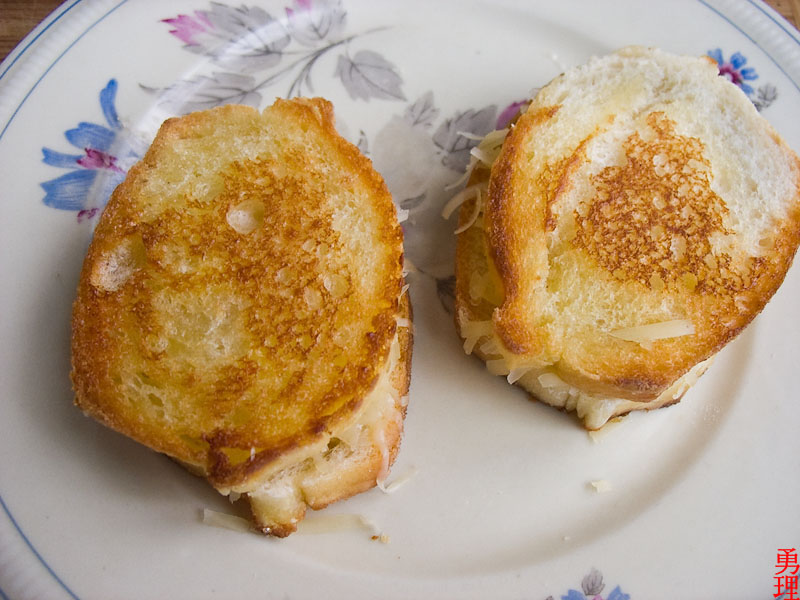 Сыр запекся и покрыл гренок ровной корочкой.